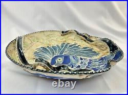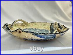 Stunning Large 14 Art Pottery Plate Blue Peacock Bird & Snake Design - Signed.