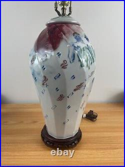 Vtg Studio Art Pottery Lidded Ceramic Urn TURNED LAMP Michael Crumb FISHERMEN